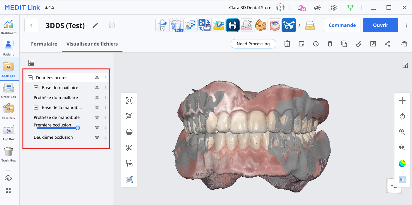Après la numérisation, les fichiers bruts doivent être optimisés et nettoyés pour devenir exploitables (pour un laboratoire, un logiciel CAD/CAM ou l’impression 3D).